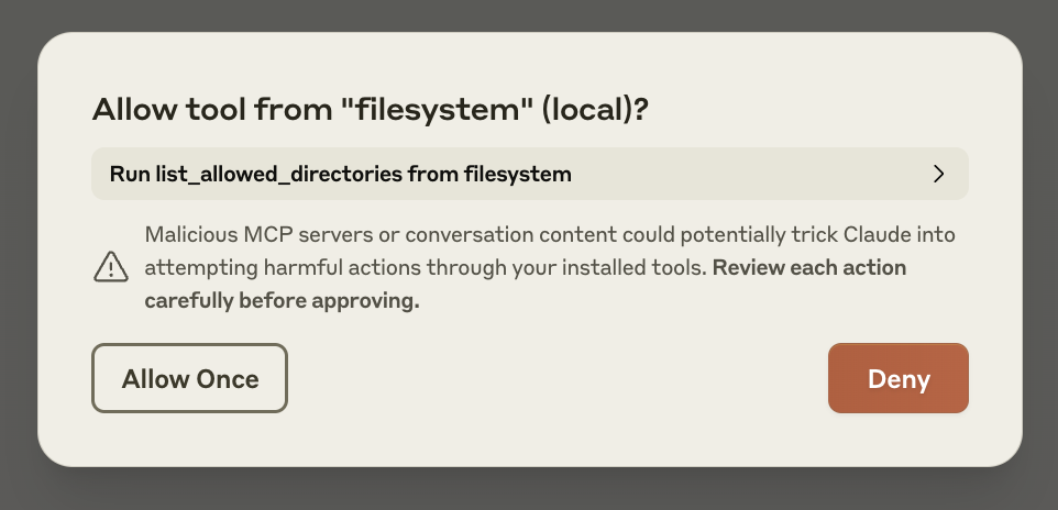 现在您可以与 Claude 对话并询问有关文件系统的问题。它应该知道何时调用相关工具。 您可以尝试问 Claude:- 你能写一首诗并保存到我的桌面吗?